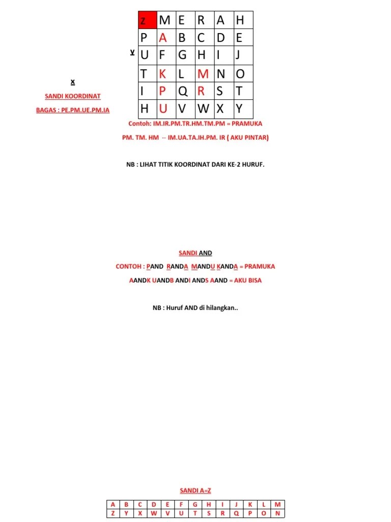 Nih arti sandi merah putih dalam pramuka!!! Untuk menentukan huruf sandi, kita harus membuat rumus sebagai berikut : Dikutip dari buku panduan wajib pramuka superlengkap yang ditulis oleh jaenudin yusup & tini rustini (2016: Cara membaca sandi koordinat sebenarnya sangat mudah dan mengasyikkan. Padahal sandi kordinat sangat mudah dan .